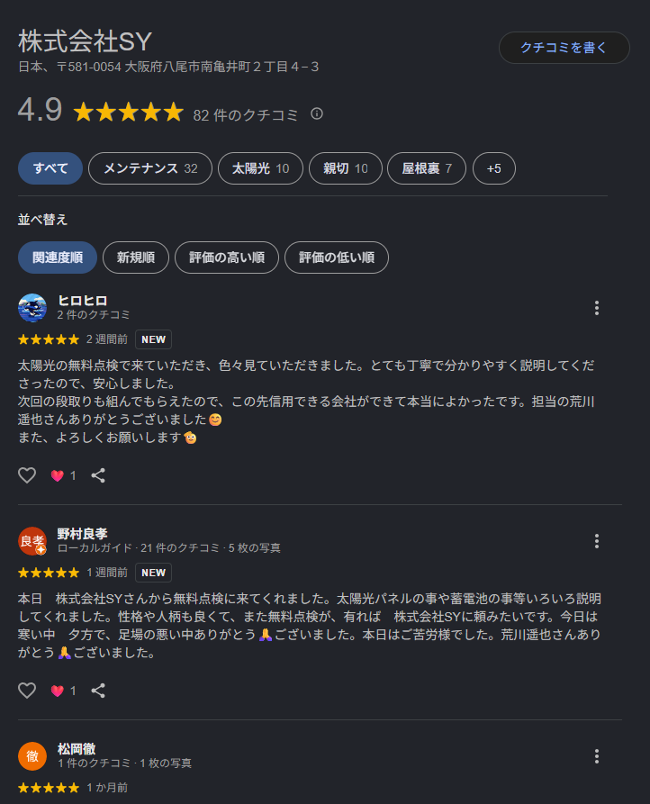 株式会社SYで施工頂いたお客様から高評価の口コミを頂いております