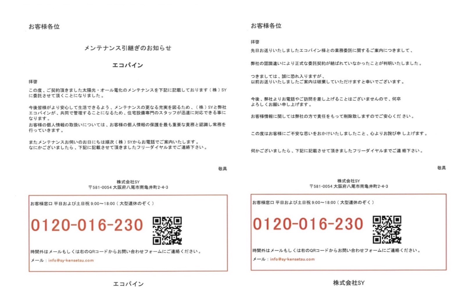 上記ハガキに記載の通り業務提携に関しましては弊社の手違いで一切ございません。